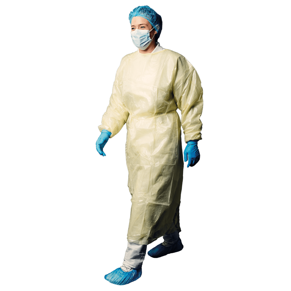 Bata protectora no tejida con revestimiento parcial de PE, talla L / XL, color amarillo, no tejida, Med-Comfort