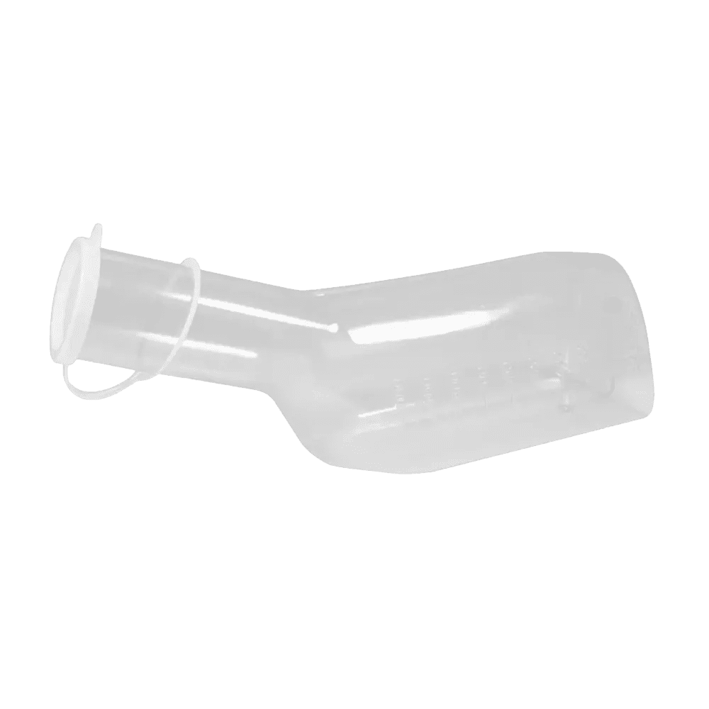 Frasco de orina de material de pvc para hombres, graduado, 1 litro, color cristalino con tapa de PE blanca, Top-Comfort