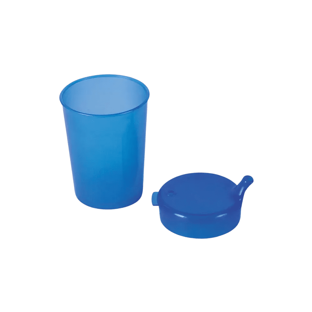 La taza de pico set está disponible en azul. Por eso, la taza de pico set es apta para su uso en muchos sectores, ya sea en hospital.Características esenciales de las tazas de pico set