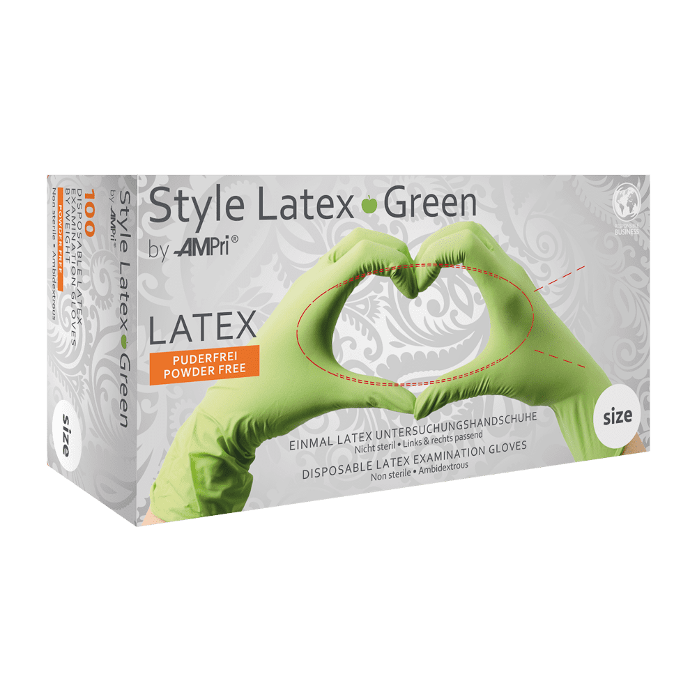 Los guantes de látex disponen una calidad "premium" de la marca Style by AMPri. AMPri distribuye exclusivamente productos con una excelente calidad básica, una calidad Classic más elevada y una impresionante calidad Premium. Puede usar los guantes protectores de látex pulverizados no estériles en cualquier mano y están diseñados para el uso ambidiestro. Debido a la superficie completamente texturizada, los guantes de protección de látex tienen un agarre significativamente mejor que otros guantes desechables que no están texturizados o sólo lo están parcialmente. Además de todas las propiedades positivas, los guantes de látex desechables también tienen la ventaja de ser especialmente fáciles de agarrar. El nivel AQL, es decir, el nivel de calidad aceptable, indica el número máximo de muestras individuales defectuosas (con fugas) de un lote o partida (nivel de rendimiento/AQL). Para los guantes médicos de un solo uso, la norma EN 455-1 prescribe un nivel AQL de estanqueidad máximo de 1,5, que los guantes de látex cumplen exactamente.Nuestra recomendación para usted: Nuestros guantes de protección de látex son ideales para una amplia gama de aplicaciones.