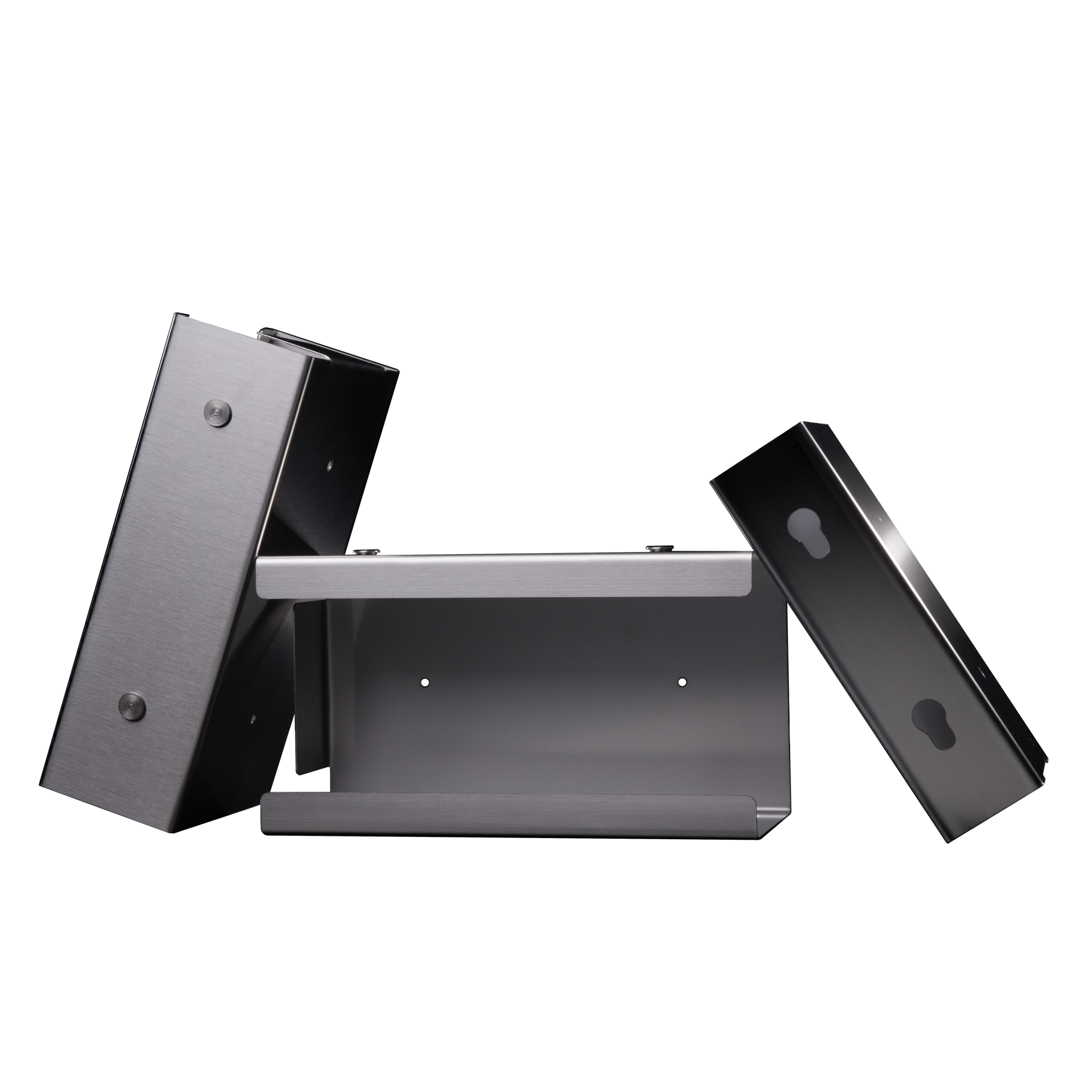 La rapidez de los procesos, la higiene y la anticipación son cruciales en las salas de los hospitales, en los quirófanos o en los centros asistenciales para que el personal pueda prepararse bien y los pacientes o las personas atendidas se sientan cómodos. Por lo tanto, los prácticos dispensadores de consumibles comunes son necesarios porque aseguran los procesos en marcha rápidamente y son higiénicos. Este soporte dispensador está diseñado para guantes desechables que pueden retirarse individual y rápidamente. Los guantes desechables se utilizan varias veces para evitar la distribución de gérmenes, virus y bacterias en o del cuerpo o para proteger a los usuarios de riesgos. Por lo tanto, deben estar disponibles en todo momento.La fabricación en acero inoxidable garantiza una resistencia especial y una sostenible vida útil sin limitaciones.