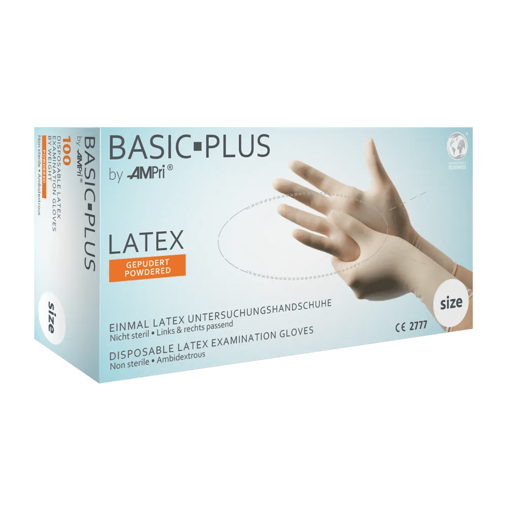 Estos guantes desechables de látex están disponibles en una excelente calidad basic. Para nosotros, en AMPri, es importante que todos nuestros productos puedan utilizarse de forma fiable en la vida cotidiana, por lo que nuestros estándares también son muy elevados para la calidad básica. Los artículos con calidad Classic pertenecen a la categoría superior y la calidad Premium pertenece a la clase superior absoluta. Los guantes de látex pulverizados no estériles son ambidiestros. Debido a la superficie completamente texturizada, los guantes de protección de látex tienen un agarre significativamente mejor que otros guantes desechables que no están texturizados o sólo lo están parcialmente. Además de todas las propiedades positivas, los guantes de látex también tienen la ventaja de ser especialmente fáciles de agarrar. El valor AQL señala el estándar de calidad de un lote o partida (límite de calidad aceptable). En el caso de los guantes médicos desechables, este valor de estanqueidad es máximo de 1,5, por lo que generalmente se aplica lo siguiente: cuanto más bajo sea el valor AQL, más convincente será la producción. Estos guantes desechables de látex cumplen los requisitos con un valor AQL de 1,5.Aplicación y ámbitos de uso de los guantes protectores de látex
