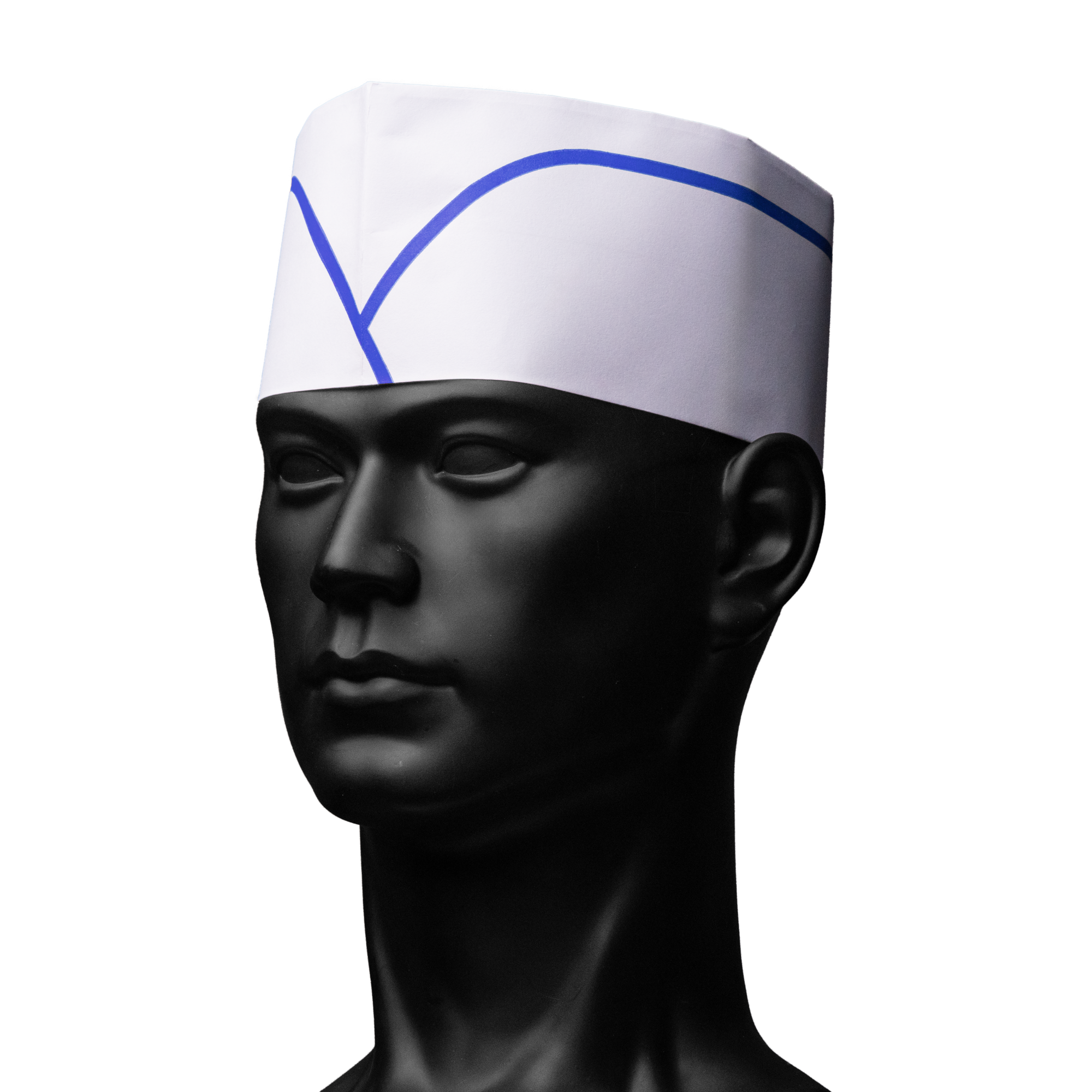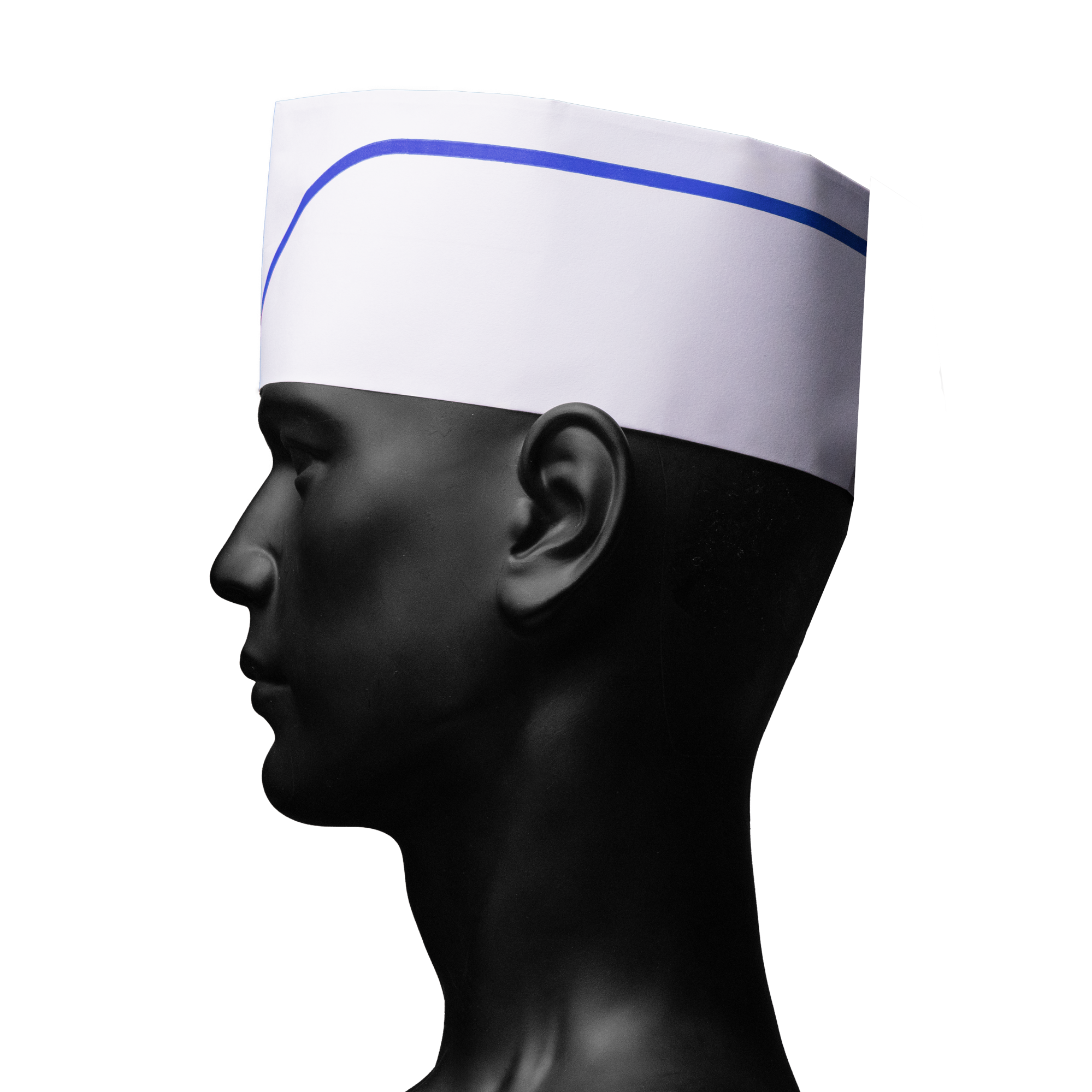 Información sobre el producto "Lanzadera de papel con vellón, color blanco con raya azul: comprar casco ajustable para cocina y hostelería como protección higiénica."
