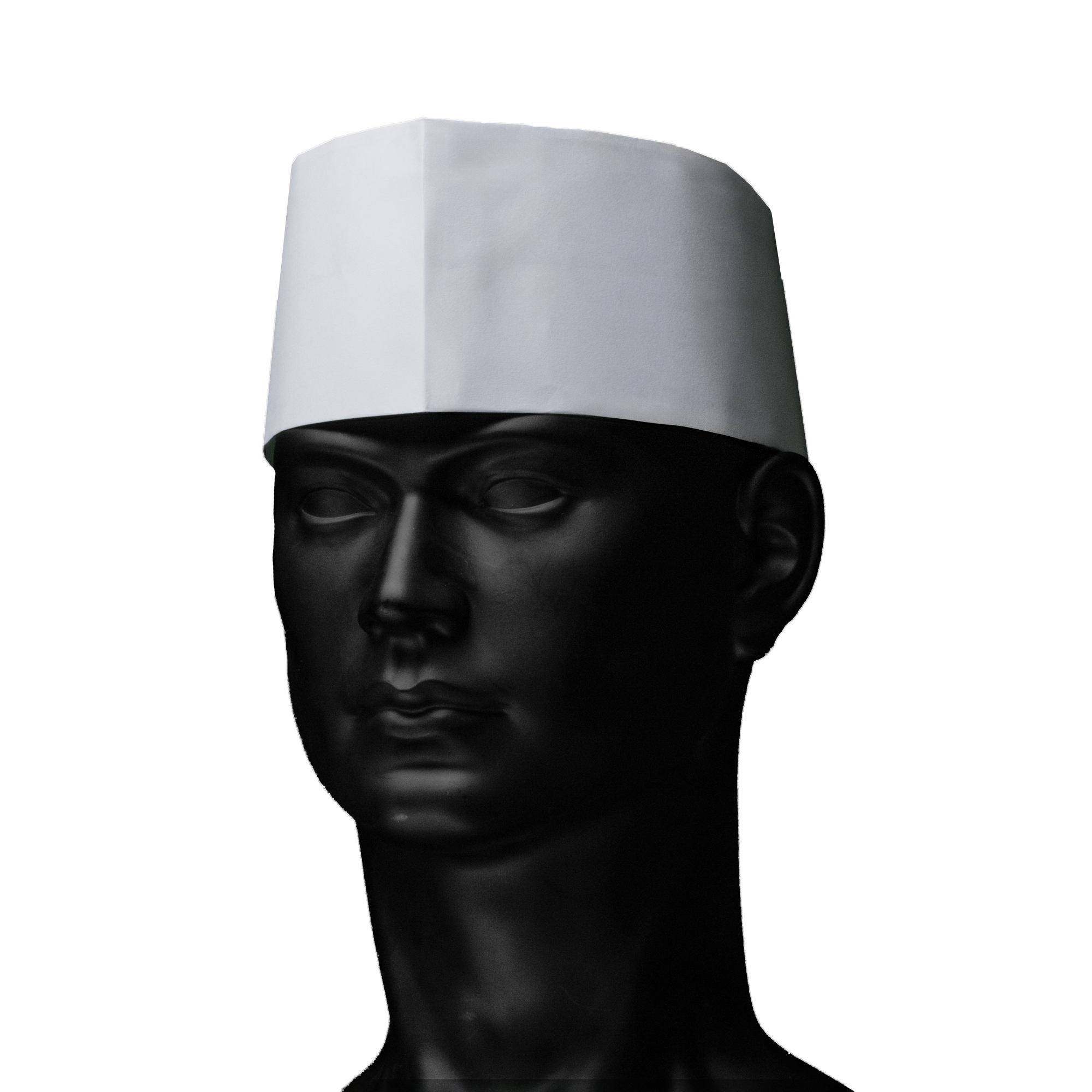 Información sobre el producto "Lanzadera de papel con vellón, color blanco sin rayas: comprar casco ajustable para cocina y hostelería como protección higiénica."