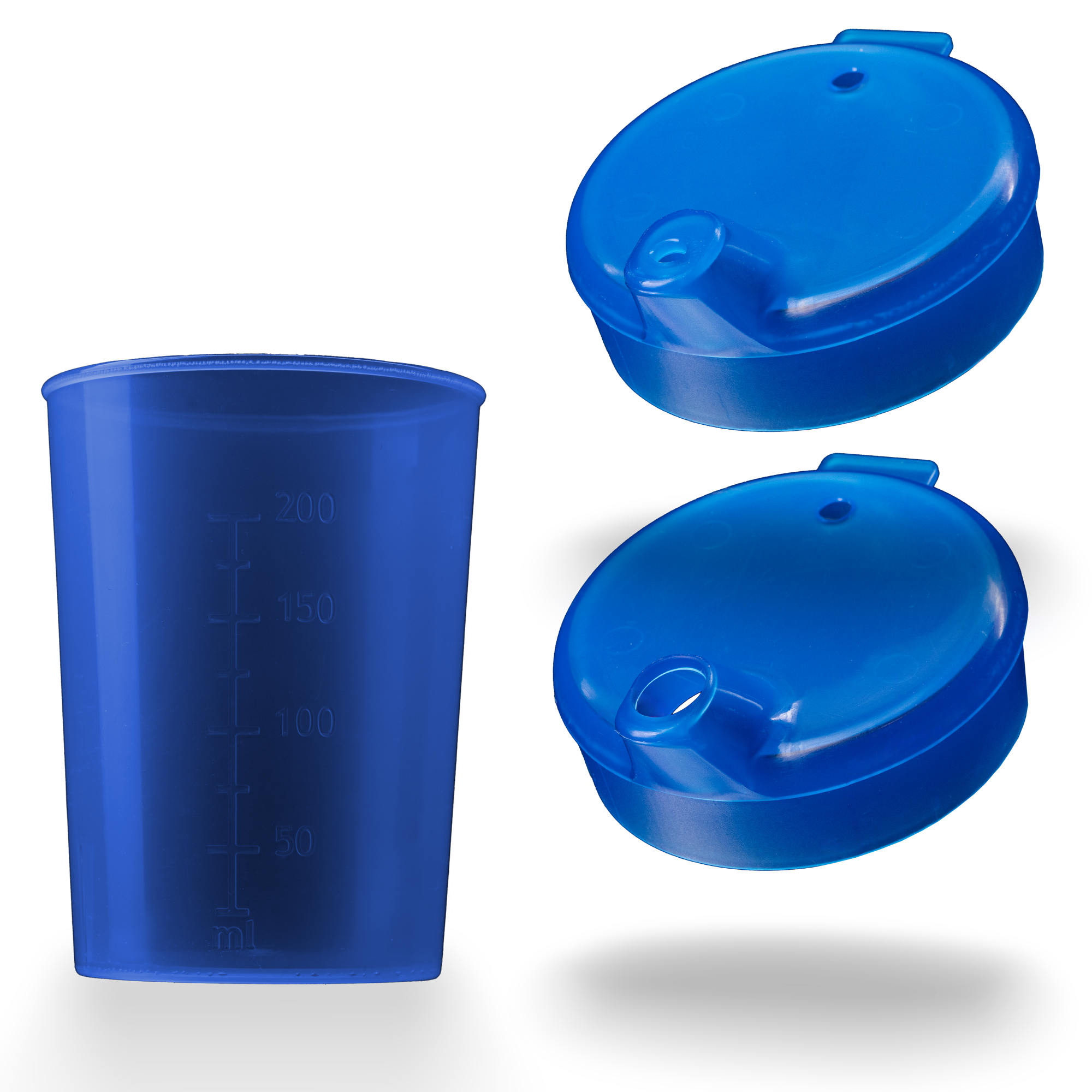 La taza de pico set para prótesis está fabricada en polipropileno. Esto hace que la taza de pico set sea muy ligera y robusta. Al mismo tiempo, es mecánicamente resistente, lo que la convierte en un excelente material. El molde redondo está diseñado ergonómicamente para facilitar el manejo de la taza de pico set. La taza de pico set se cierra con una tapa.